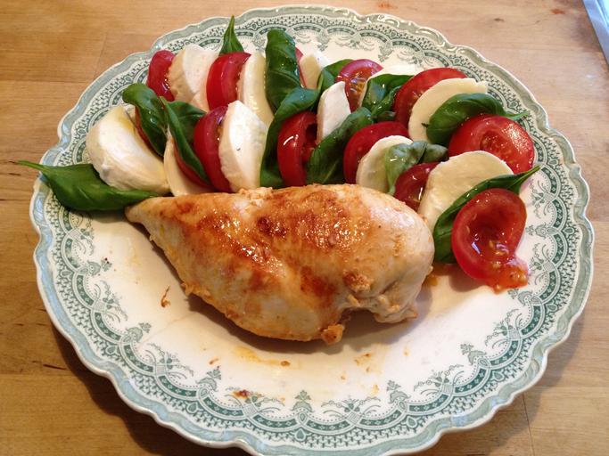 Keywords: chicken salad food summer basilique tomato mozzarella