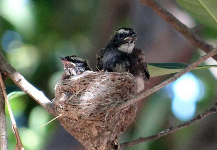 Keywords: chicks fledglings white-throated fantail flycatcher rhipidura albicollis passerine bird karnataka india