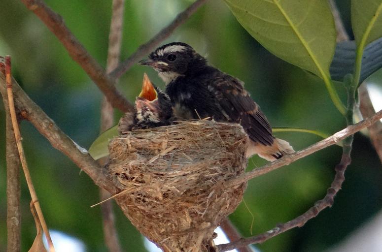 Keywords: chicks fledglings white-throated fantail flycatcher rhipidura albicollis passerine bird karnataka india