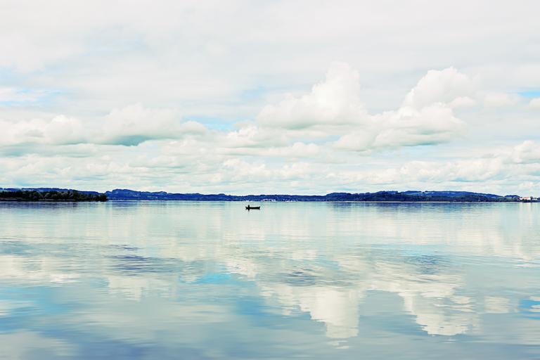 Keywords: chiemsee bavaria germany lake water nature upper bavaria quiet silent cloudy fish boot landscape horizontal in the free