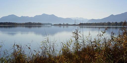 Keywords: chiemsee landscape nature lake water blue sky mountains view peaceful mood distant upper bavaria vision chiemgau quiet