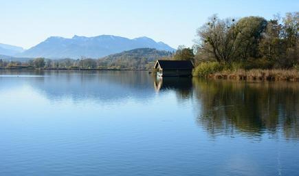 Keywords: chiemsee landscape nature lake water blue sky mountains view peaceful mood distant upper bavaria vision chiemgau quiet