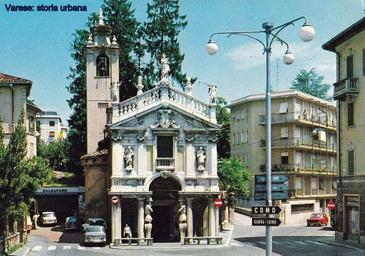 Keywords: Chiesa della Madonnina in Prato. La facciata, realizzata tra il 1686 e il 1687, è addossata ad un preesistente edificio quattrocentesco (si vede a sinistra la cappella laterale adornata in alto dal tipico motivo a denti di sega caratteristico dell'architettura lombarda gotica). Il campaniletto è stato modificato e sopraelevato nel 1722. varese biumoinferiore |