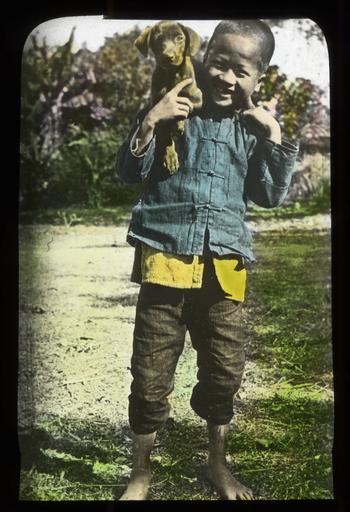 | Keywords: Child carrying a dog, China, ca. 1918-1938 (MFB-LS0236).jpg en <br> Child carrying a dog China ca 1918-1938 Colorized lantern slide of a smiling child standing outdoors carrying a puppy on his left shoulder The child wears traditional clothing and is missing some of his front teeth Photographer Unknown Subject keyword boys; portraits Filename MFB-LS0236 Coverage date 1918/1938 Subject unesco boys Part of collection International Mission Photography Archive ca 1860-ca 1960 Type images Part of subcollection Photographs of the Catholic Foreign Mission Society of America Maryknoll New York 1912-1945 Part of repository Maryknoll Mission Archives Repository name Maryknoll Mission Archives Archival file impa_Volume32/MFB-LS0236 tiff Repository address Maryknoll Mission Archives PO Box 305 Maryknoll N Y 10545-0305 Geographic subject country China Geographic subject continent Asia Rights http //www maryknollsociety org/index php/articles/2-articles/593 Repository email archives maryknoll org Date created 1918/1938 Publisher of the digital version University of Southern California Libraries Format aat lantern slides Legacy record ID impa-m60380 Access conditions http //www maryknollsociety org/index php/articles/2-articles/593 File MFB/LanternSlides/LS0236 1918/1938 author http //digitallibrary usc edu/cdm/ref/collection/p15799coll123/id/11277 PD-old-70-1923 Magic lantern images Images from USC Digital Library uploaded by Fæ International Mission Photography Archive ca 1860-ca 1960 Standing boys Boys with dogs |