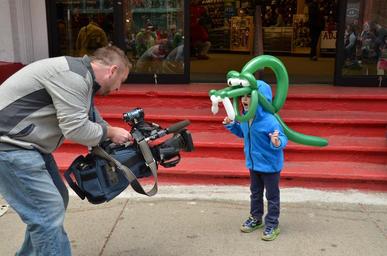 Keywords: child crocodile balloon camera cameraman