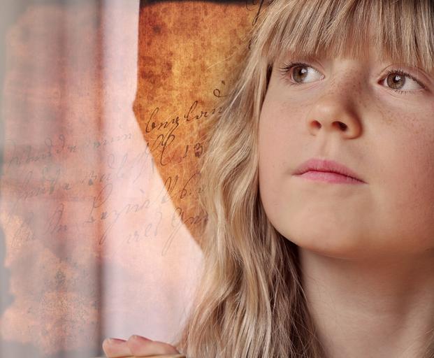 Keywords: child girl blond face portrait pretty view retro look