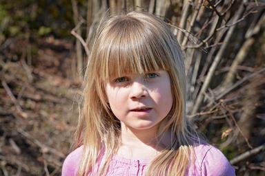 Keywords: child girl face blond long hair out nature