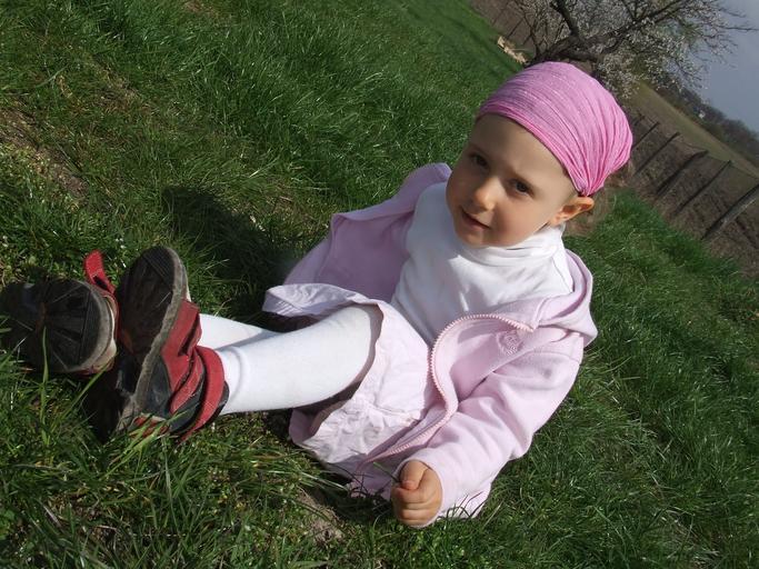 MAKE A MEME View Large Image child pink winter view sit in the grass girl happy