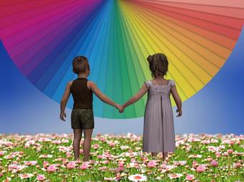 Keywords: children forward peaceful affection play rainbow color girl boy friends go digital art color color palette flower meadow wildflowers meadow spring green white flowers spring meadow background image wild flowers beautiful bloom nature sun flower summer colorful