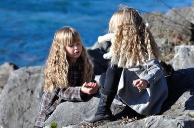 Keywords: children girl blond river stones nature