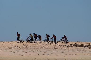 Keywords: children south africa bicycles beach sea group black african africa desert sahara
