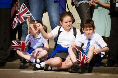 Keywords: children union jack union flag sitting road street waving royal kingdom united cute kid flag union jack spontaneous young joy audience