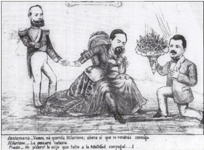 | Keywords: Chile y Peru pretenden Bolivia.jpg es Caricaturas chilenas de la Guerra del Pacífico - Patricio Ibarra Cifuentes Durante 1879 el gobierno chileno debido a la iniciativa del ministro de relaciones exteriores y luego del interior Domingo Santa María propuso a Bolivia le entregara Antofagasta a cambio de la sesión de Tacna y Arica Estas y otras tratativas han sido denominadas por la historiografía chilena como la Política Boliviana El presidente boliviano Hilarión Daza luego de estudiar la documentación correspondiente puso en conocimiento de la oferta chilena tanto al Perú como a la Argentina La caricatura publicada por El Barbero el 18 de octubre de 1879 muestra a Daza caracterizado como una mujer siendo cortejada por el jefe de gabinete chileno con un ramo de flores donde se leen los nombres de Tacna y Arica Por otra parte el presidente del Perú Ignacio Prado recibe un sobre de manos de Daza por el cual se impone de las intenciones chilenas a la par que interpela a Santa María por incitar a la infidelidad de la nación del altiplano 1879-10-18 http //www tesis uchile cl/tesis/uchile/2009/ibarra_pa/html/index-frames html Chilean Magazine El Barbero Oct and Nov 1879 other versions PD-Art Uploaded with UploadWizard Chilean Caricatures in the War of the Pacific |