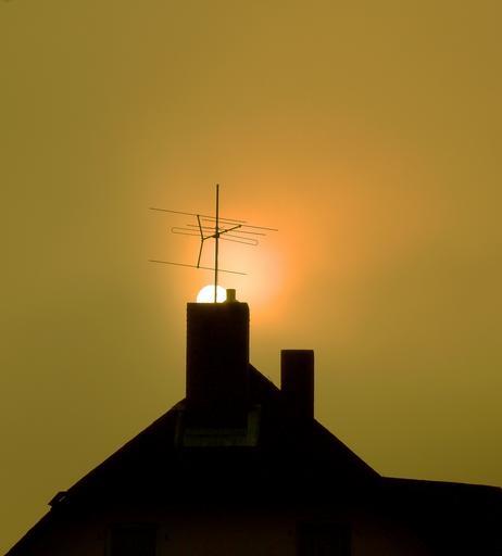 Keywords: chimney roof sun sunset home building fireplace spotlight house roof sky afterglow disappear antenna natural phenomenon sunshine phenomenon