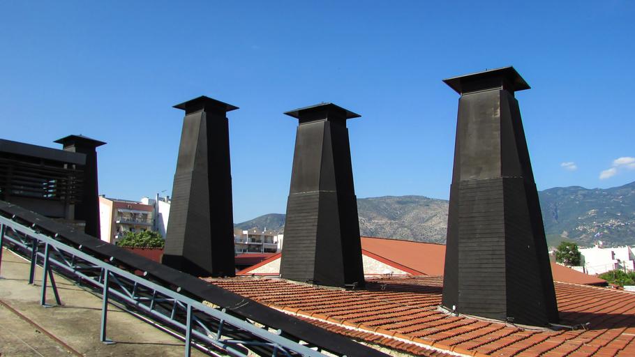 Keywords: chimneys old factory industrial building brick factory restoration reuse museum architecture tsalapatas museum greece volos