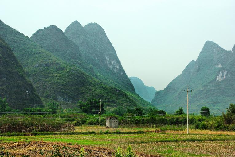 Keywords: china yangshuo rural landscape hills dampness valley field