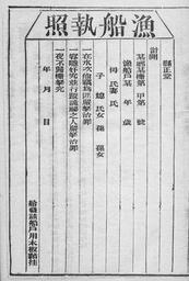 | Keywords: Chinese fishing license from the Qing era in the Baojiashu jiyao (1838).jpg Qing dynasty fishing license for boat operators from the Baojiashu jiyao 甲書輯要 published in 1838 1838 object history credit line accession number Antony Robert J Elusive Pirates Pervasive Smugglers Violence and Clandestine Trade in the Greater China Seas Hong Kong Hong Kong UP 2010 96 Print Original source Baojiashu jiyao 1838 1896 Shanghai Unknown publisher PD-old-100 Fishing in China Law enforcement in China Documents of the Qing Dynasty |