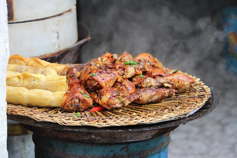 Keywords: chinese food barbecue spring rolls autdoors china