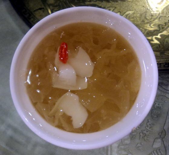 Keywords: Chinese Lotus fruit soup.jpg en Sweet Chinese Lotus fruit soup restaurant in Beijing China 2011-10-30 own Brücke-Osteuropa cc-zero Uploaded with UploadWizard Fruit soup