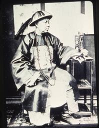 | Keywords: Chinese mandarin dressed in traditional clothing, Changde, Hunan, China, ca.1900-1919 (IMP-YDS-RG008-358-0008-0012).jpg en <br> Chinese mandarin dressed in traditional clothing Changde Hunan China ca 1900-1919 A typical Chinese mandarin in full regalia plum-colored satin robe with embroidered mandarin square The necklace of jade or amber indicated by its length the rank of the wearer The hat crowned by a crystal ball sported a pony-tail of horsehair ; Captions for this set of lantern slides from the papers of Oliver and Jennie Logan American Presbyterian missionaries in Hunan were provided by their daughter Elsa Subject aat portraits Photographer Unidentified Filename IMP-YDS-RG008-358-0008-0012 Geographic subject Hunan; China Subject unesco Fashion; Customs and traditions Part of collection International Mission Photography Archive ca 1860-ca 1960 Type images Part of subcollection Photographs from the Yale Divinity School Library New Haven Connecticut ca 1880-1950 Part of repository Yale Divinity Library Special Collections Repository name Yale University Divinity School Day Missions Library Format lantern slides Archival file impa_Volume289/IMP-YDS-RG008-358-0008-0012 tiff Repository address Yale University Divinity School Library 409 Prospect Street New Haven CT 06511 Part of series Oliver and Jennie Logan Papers Repository email Divinity Library yale edu Date created 1900/1919 Publisher of the digital version University of Southern California Libraries Format aat photographs Legacy record ID impa-m66276 Access conditions http //www library yale edu/div/reproductions html Coverage date 1900/1919 1900/1919 date created Unidentified http //digitallibrary usc edu/cdm/ref/collection/p15799coll123/id/51504 PD-old-70-1923 Magic lantern images Images from USC Digital Library uploaded by Fæ International Mission Photography Archive ca 1860-ca 1960 Mandarin bureaucrat |