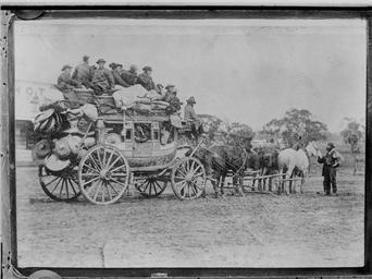 Keywords: Chinese on stagecoach to goldfields.jpg en Stage coach laden with luggage and many Chinese people en rout to the gold fields http //search slv vic gov au/primo_library/libweb/action/dlDisplay do dscnt 1 dstmp 1323909583238 docId SLV_VOYAGER1751095 vid MAIN fromLogin true author circa 1900 1920 Copyright also apparently expired Attribution State Library of Victoria Collections PD-old Immigration Australian gold rushes Stagecoaches in Australia |