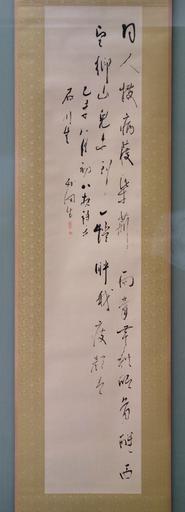 | View Original: | Chinese-style Quatrain in Seven-character Phrases, calligraphy by Tanomura Chikuden (1777-1835), Edo period, dated 1835 (Tenpo 6), ink on paper - Tokyo National Museum - DSC06106.JPG (1977x5472) | |||
