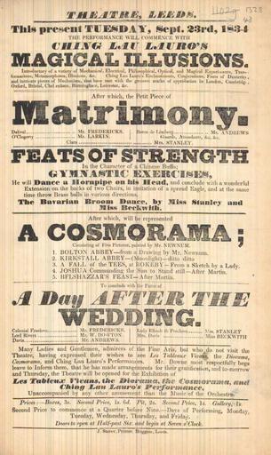 Keywords: Ching Lau Lauro 23 Sep 1834.jpg Theatre Leeds West Yorkshire poster of Tuesday 23 September 1834 advertising the magician Ching Lau Lauro http //www leodis net/playbills/images/lge/2003618_21752566 jpg 1834-09-23 Anon PD-old-70-1923 Ching Lau Lauro Playbills of the United Kingdom The Theatre Leeds |