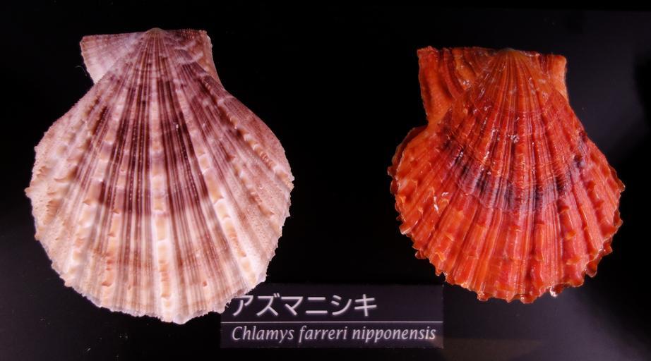 Keywords: Chlamys farreri nipponensis - National Museum of Nature and Science, Tokyo - DSC06770.JPG en Exhibit in the National Museum of Nature and Science Tokyo Japan Photography was permitted in the museum without restriction 2013-09-04 20 43 05 own Daderot cc-zero Mollusca in the National Museum of Nature and Science Tokyo Uploaded with UploadWizard Chlamys farreri |