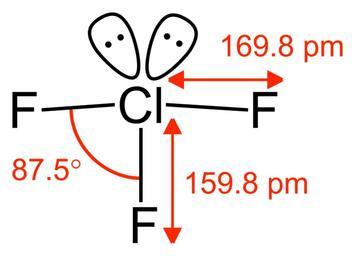 Keywords: Chlorine-trifluoride.png Structure and dimensions of the chlorine trifluoride molecule ClF<sub>3</sub> as determined by microwave spectroscopy Based on the diagram on page 829 of Greenwood Earnshaw Structure drawn in http //www cambridgesoft com/software/ChemBioDraw/ ChemBioDraw Ultra 12 0 Own 2011-01-06 Ben Mills Benjah-bmm27 Images by Ben Mills Chlorine trifluoride |