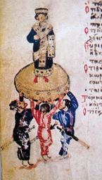 | Keywords: Chludov proclamation.jpg en Roman custom of proclamation of emperor on the shield King Hezekiah From Chludov Psalter ru Ца ь Езекия Изоб ажено п овозглашение по обычаю имских импе ато ов - на щите own photo from reprint edition anonimous middle of the 9th Century PD-Art Chludov Psalter Files uploaded by Shakko from various sources Uploaded by Shakko/Photos Medieval miniatures of Byzantine emperors Raising on a shield | ||||