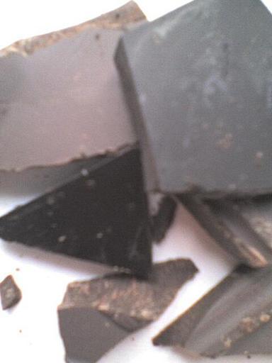 Keywords: Chocolat.jpg Morceaux de chocolats noirs environ 60 et 99 de cacao Own 2007-11 Ti titi coco ecolo low quality food picture Dark chocolate