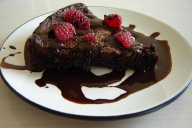 Keywords: chocolate cake torte sweet dessert tasty delicious flourless food fresh raspberries plate cooking snack slice serving cocoa
