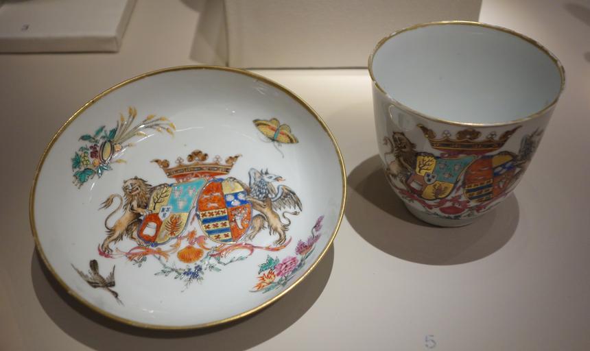 | Keywords: Chocolate cup and saucer, probably for French market, China, c. 1740, porcelain - Chazen Museum of Art - DSC02288.JPG en Exhibit in the Chazen Museum of Art University of Wisconsin-Madison Madison Wisconsin USA This artwork is old enough so that it is in the public domain Photography was permitted in the museum without restriction 2013-07-21 13 52 22 own Daderot cc-zero Chinese export porcelain in the Chazen Museum of Art Uploaded with UploadWizard | ||||