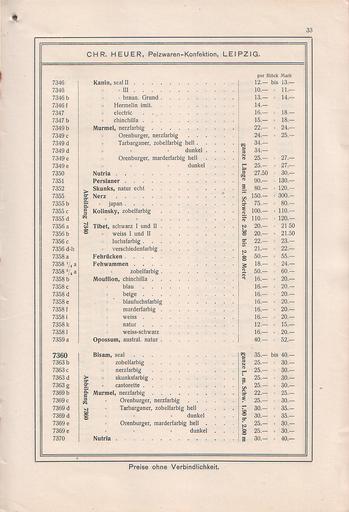 | Keywords: Chr. Heuer, Leipzig, Pelz-Konfektions-Katalog 1908-1909 -33.jpg Chr Heuer Leipzig Ausgabe Saison 1908-1909 Konfektions-Katalog Leipzig Reichsgasse Nr 34 Pelzwaren Fabrikation Rauchwaren-Lager Filialen in Köln Schildergasse 55 a1; Breslau Blücherplatz 20 Ecke Ring Vertreten in Königsberg i Pr Heinrich Lange Magisterstrasse 28 Paris G Créveux 97 Rue d'Aboukir Neapel R Giustiniani 33 Via Guglielmo Sanfelice Haag G J Wijtenberg 78 Schenkweg Kopenhagen Fr Löwenstein 134 Osterbrogade Chr Heuer Leipzig Pelz-Konfektions-Katalog 1908-1909 - jpg 32 34 Chr Heuer Leipzig Ausgabe Saison 1908-1909 Konfektions-Katalog / Collection Kuhn 1908 Chr Heuer PD-old Chr Heuer Leipzig Pelz-Konfektions-Katalog 1908-1909 Rabbit fur advertising Marmot fur advertising Nutria fur advertising Karakul fur advertising Skunk fur advertising Mink fur advertising Kolinsky fur advertising Tibet lamb fur advertising Squirrel fur advertising Mouflon fur advertising Possum fur advertising Musquash fur advertising |
