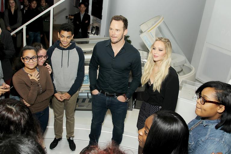 Keywords: new york newyork ny us New York, NY - 12/6/16: Chris Pratt and Jennifer Lawrence Surprise Ghetto Film School Students at the Sony Square Passengers Experience in NYC. New York, NY - 12/6/16: Chris Pratt and Jennifer Lawrence Surprise Ghetto Film School Students at the Sony Square Passengers Experience in NYC.