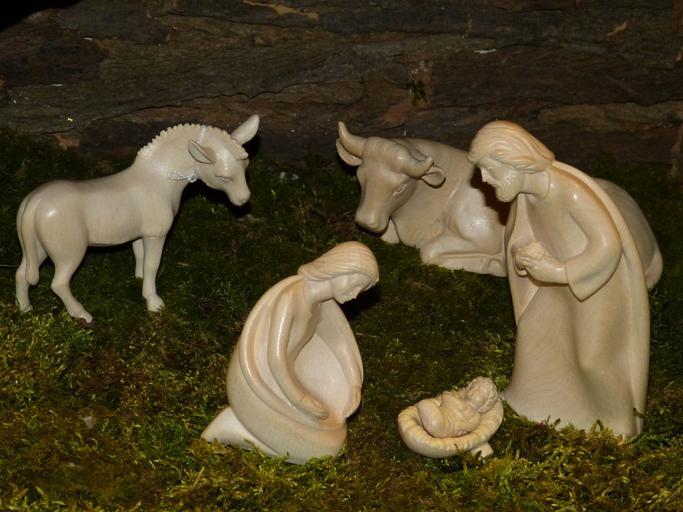 Keywords: christmas advent nativity scene crib maria josef jesus christmas story father christmas santon joseph stall jesus birth child christmas crib figures donkey fig wood carving arts crafts carving wood ox