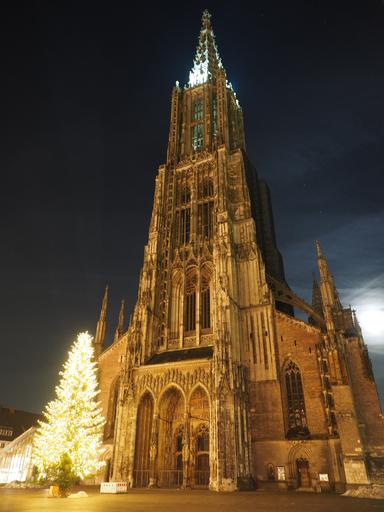 Keywords: christmas christmas lights münster ulm cathedral church steeple lighting lamps christmas decoration cathedral square ulm christmas tree christmas decorations night dark
