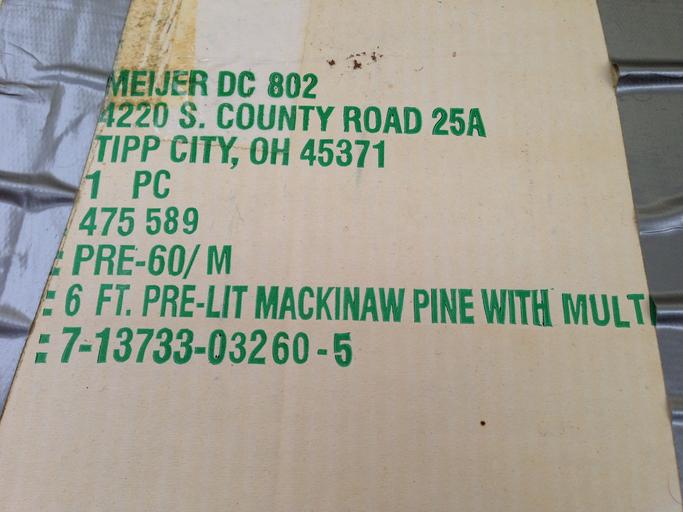 | Keywords: meijer distribution center meijerdistributioncenter distribution center warehouse retail cardboard lights decoration holiday indoor MEIJER DC 802 4220 S. COUNTY ROAD 25A TIPP CITY, OH 45371 1 PC 475 589 PRE-60/ M 6 FT. PRE-LIT MACKINAW PINE WITH MULT 7-13733-03260-5 MEIJER DC 802 4220 S. COUNTY ROAD 25A TIPP CITY, OH 45371 1 PC 475 589 PRE-60/ M 6 FT. PRE-LIT MACKINAW PINE WITH MULT 7-13733-03260-5 | ||||