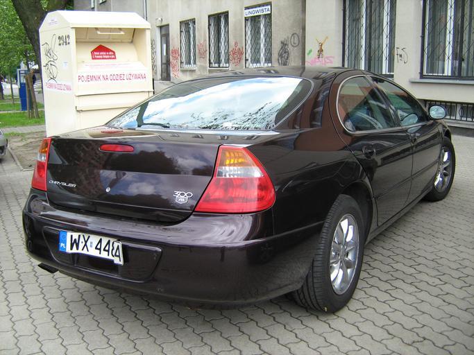 Keywords: Chrysler 300 M black in Warsaw r.jpg en Chrysler 300M sedan finished in black View of the rear Picture taken in Warsaw Poland with the car parked on ulica Szczygla A clothing drop-off bin or box for collection of used clothing is visible in the background own 2010-05-25 CZmarlin ” Christopher Ziemnowicz releases all rights but a photo credit would be appreciated if this image is used anywhere other than Wikipedia Please leave a note at Wikipedia http //en wikipedia org/w/index php title User_talk CZmarlin action edit section new here Thank you en I the copyright holder of this work hereby release it into the public domain This applies worldwide thumb left This Chrysler viewed from the front Chrysler 300M Black Chrysler sedans Automobiles facing right