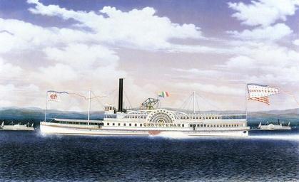 | Keywords: Chrystenah (steamboat).jpg en Chrystenah steamboat oil on canvas by James Bard Also depicted in background are 1 on left ahead of bow the steamboat Peter G Coffin; and 2 on right astern the steamboat Isaac P Smith http //www the-athenaeum org/ The Athenaeum org Creator James Bard 1867 PD-old-100 Original as of 1997 in a private collection in New Jersey Reproduced in Mariner's Museum and Peluso Anthony J Jr The Bard Brothers -- Painting America under Steam and Sail Abrams New York 1997 ISBN 0-8109-1240-6 In particular this book reproduces larger images of the background vessels Peter G Coffin and Isaac P Smith PD-old-100 James Bard 1861-1870 works Chrystenah ship 1866 Images from the-athenaeum org |
