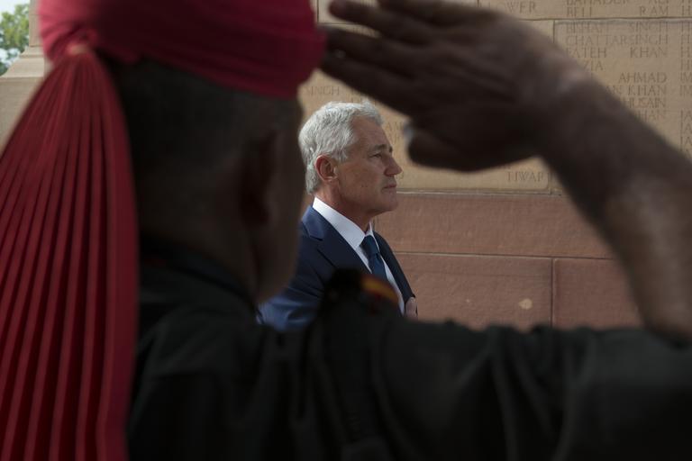 | Keywords: Chuck Hagel at the Amar Jawan Jyoti War Memorial 3.jpg  New Delhi India Aug 8 2014 -- Secretary of Defense Chuck Hagel lays a wreath at the Amar Jawan Jyoti War Memorial at India Gate in New Delhi India August 8 2014 DoD photo by Petty Officer 2nd Class Sean Hurt/Released https //www flickr com/photos/secdef/14858772682/ 140808-N-AF077-290 2014-08-08 06 26 https //www flickr com/people/68842444 N03 Ash Carter PD-USGov Secretary of Defense https //flickr com/photos/68842444 N03/14858772682 2015-12-11 09 55 12 United States Government Work Chuck Hagel in India 2014 in New Delhi Amar Jawan Jyoti Tomb of the Unknown Soldier  |