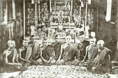 Keywords: Chulalongkorn and his teachers in ordination.jpg en King Chulalongkorn and his teachers in ordination in 1873 th จากซ้ายไปขวา 1 พระบาทสม ด็จพระจุลจอม กล้า จ้าอยู่หัว 2 th พระวรวงศ์ ธอ พระองค์ จ้าพระอรุณนิภาคุณากร 3 th พระ ทพกระวี นิ่ม สุจิณฺโณ 4 th สม ด็จพระมหาสมณ จ้า กรมพระยาปว รศวริยาลงกรณ์ 5 th พระจันทรโคจรคุณ ยิ้ม จนฺทรํสี 6 th สม ด็จพระวันรัตน์ ทับ พุทฺธสิริ 7 th พระพรหมมุนี หมือน สุมิตฺโต 8 th สม ด็จพระพุฒาจารย์ ศรี อโนมสิริ 9 th สม ด็จพระอริยวงศาคตญาณ สม ด็จพระสังฆราช สา ปุสฺส ทโว http //www jaowka com/รูปถ่าย มื่อครั้งรัชกา/ author 1873 PD-Thailand Photos of Rama V Buddhist ordinations in Thailand PD-old-100