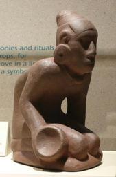 | Keywords: Chunkey player figurine.jpg 8 5 in cm high by 5 5 in cm wide Missouri flint clay statuette depicting a player of the ancient Native American game of chunkey Believed to have been originally crafted at or near the Cahokia Mounds site in Illinois it was found in en Muskogee County Oklahoma It is now part of the Henry Whelpley Collection at the St Louis Science Center <ref> Cite book Early Art of the Southeastern Indians Feathered Serpents Winged Beings Susan C Power University of Georgia Press 2004-06-31 978-0820325019 123-125 </ref> Own TimVickers date reflist Cahokia flintclay statuary Chunkey player Muskogee County Oklahoma Earrings in art |