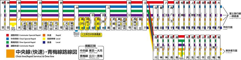 | Keywords: Chuoline rapid.svg ja 2008年12 現 の ja 中央線快 車駅及び直 先の ja 梅線の 車駅表 日 語メインで英語にもほぼ対 Chuo Line and en Ōme Line on Dec 2008 It is a Japanese edition but almost copes with English ja 中央線快 ・ ja 梅線より 成 Myself 2008-12-14 Ōme Line Chūō Rapid Line Railway maps of JR East |