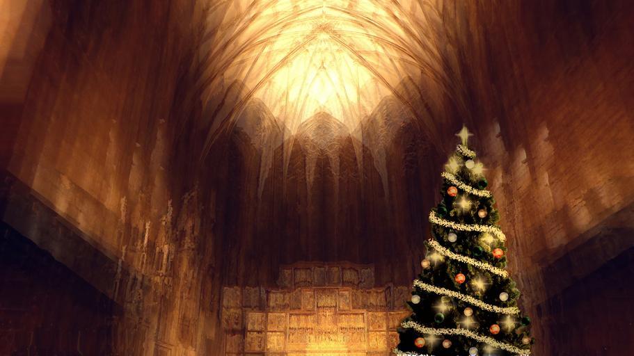 Keywords: church christmas atmosphere aisle christmas tree golden lighting christmas ornaments dom