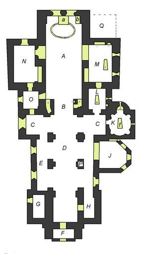 | Keywords: Church plan Vreta monastery church, Sweden.png Church plan of Vreta monastery church Plan över Vreta klosters kyrka After Frans Oscar Wågman's book Vreta kloster published in 1904 Mr Wågman 1849 - 1913 has been dead for more than 70 years 1904 Thuresson Legend ;A Koret ;B Triumfbågen ;C Korsarmarna ;D Mittskepp ;E Sidoskepp ;F Vapenhus ;G Likbod ;H Sidoskeppets utvidgning ;J Douglasska gravkoret ;K Ragvald Knaphöfdes kor ;L Magnus Nilssons kor ;M Sune Siks kor ;N Sakristian ;O Skvallerkuren ;P Pelare ;Q D'Albedyhllska graven ;a Altare ;b Inges gravvård ;c Uttömningssten ;d Gång ;e Magnus Nilssons grav ;f Ragvald Knaphöfdes grav ;g Altare ;h Uppgång till predikstolen ;i Ingång till D'Albedyhlsska graven ;k Sune Siks grav ;l Uttömningssten Plans of churches in Sweden Plans of Romanesque churches Vreta klosters kyrka |
