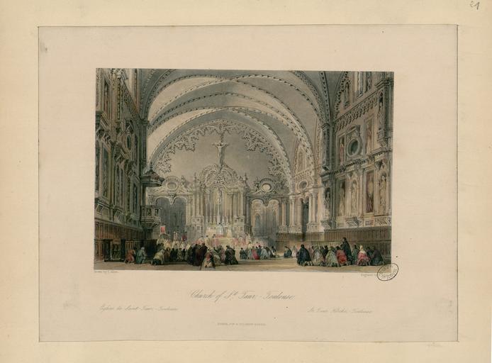 | Keywords: Church of St Taur, Toulouse = Eglise de Saint-Taur, Toulouse = St Taur Kirche, Toulouse - Fonds Ancely - B315556101 A ALLOM 2 021.jpg Réunion de 23 gravures en couleurs concernant les Pyrénées Toulouse et Bordeaux Extrait des trois volumes de La France au XIXe siècle de Thomas Allom qui contient 19 planches concernant les Pyrénées pl 45 49 55 62 68 75 78 80 81 83 Tome II et 5 7 16 37 42 45 65 83 85 Tome III Dans chaque tome le faux titre est gravé sur acier et rédigé en anglais Les planches pyrénéennes ont souvent été réunies en albums sans texte Cet exemplaire réunit 23 gravures sur acier en couleurs concernant les Pyrénées Toulouse et Bordeaux - Planches séparées Gravures exécutées par A Willmore C T Dixon E Radclyffe J Kernot W Floyd R Wallis S Fischer J C Bentley H Adlard Augs Fox J Templeton S Bradshaw J Tingle T Turnbull J Carter d'après les dessins de T Allom Ancely René 1876 - 1966 Possesseur eng fre ger public domain domaine public B315556101_A_ALLOM_2_021 jpg image/jpeg 1 f de pl gr en coul ; 27 cm Delille Charles-Jean Collaborateur Adlard H Graveur http //numerique bibliotheque toulouse fr/collect/general/index/assoc//ark /74899/B315556101_A_ALLOM_2_021 dir/B315556101_A_ALLOM_2_021 jpg Bibliothèque municipale de Toulouse A-ALLOM 2-21 Creator Thomas Allom http //catalogues toulouse fr/web2/tramp2 exe/do_keyword_search/log_in setting_key BMT1 servers 1home query p000077 City of Auch Pyrenees La ville d'Auch Pyrénées Die Stadt Auch Pyreneens Château and bridge of Pau Castle of Pau the birth-place of Henri Quatre Château de Pau lieu de naissance de Henri IV Schloss Pau geburtsort Heinrichs IV Pic du Midi d'Ossau Der Pic du Midi d'Ossau Eaux-Bonnes in the Pyrenees Eaux-Bonnes dans les Pyrénées Eaux-bonnes in den Pyreneen The Col de Tortes - Hunting the Izard Le col de Tortes - Chasse de l'Izard Der Col de Tortes - Die jagd des Izard Val d'Azun High Pyrenees Cauterets in the Pyrenees Pont d'Espagne High Pyrenees Pont d'Espagne Hautes-Pyrénées Spanische Brücke Hohe Pyreneen Lac de Gaube Pyrennees Lac de Gaube Pyrénées Der see zu Gaube in den Pyreneen Church of the Knights Templars at Luz Eglise des Templiers à Luz Kirche der Malteser zu Luz Double bridge of Scia Valley of the Gave de Gavarnie Double pont de Scia Vallée du gave de Gavarnie Doppel brücke bei Scia Gave-Thal von Gavarnie The Circle of Gavarnie Pyrenees A Cabaret in the Pyrenees rainy day Cabaret dans les Pyrénées Un jour pluvieux Wirthshaus in den Pyreneen an einem regentage Bagnères de Bigorre - Pyrenees Bagnères de Bigorre - Pyrénées Bagnères de Bigorre in den Pyreneen Bagnères de Luchon Pyrénées Bagnères de Luchon Pyreneen Castle and Valley d'Oo - Pyrenees Château et Vallée d'Oo-Pyrénées Schloss und Thal von Pyreneen Lake d'Oo - High Pyrenees Lac d'Oo Hautes-Pyrénées Der See d'Oo Obere Pyreneen The Bridge of Toulouse Pont de Toulouse Die Brücke zu Toulouse Church of Saint Sernin Toulouse Eglise de Saint-Sernin à Toulouse Die Kirche des Heil Sernin in Toulouse The Capitol of Toulouse Capitole de Toulouse Capitol zu Toulouse Quay of Louis XVIII Bordeaux Quai de Louis XVIII Bordeaux Der Quai Ludwigs XVIII Bordeaux vignette http //numerique bibliotheque toulouse fr/collect/general/index/assoc//ark /74899/B315556101_A_ALLOM_2_021 dir/B315556101_A_ALLOM_2_021_thumb jpeg by 1840 Church of St Taur Toulouse Eglise de Saint-Taur Toulouse St Taur Kirche Toulouse B315556101_A_ALLOM_2_021 engraving - print - colors Thomas Allom Pulpits Choirs architecture Toulouse in the 1840s Interior of Église Notre-Dame du Taur Churches in art Kneeling in art |