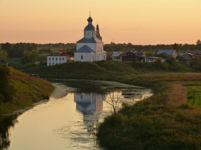 Keywords: church suzdal orthodox russian orthodox russia dome tower building religion believe russian orthodox church evening afterglow sunset river bach mirroring idyllic
