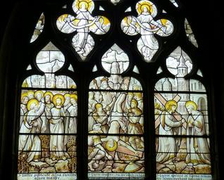 Keywords: church window window church stained glass glass old window faith passion crucifixion cross suffering good friday historically jesus christ descent from the cross mourning death angel