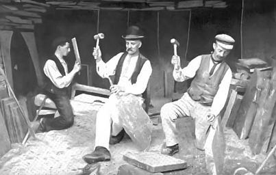 | Keywords: Chwareli retouched.jpg Quarrymen splitting slate at Dinorwig Quarry Wales c 1910 Dinorwic Quarry Steinbrucharbeiter spalten Schiefer im Dinorwic-Steinbruch Scanned by Rhion Pritchard 01/09/2006 from Dinorwic Slate Quarries Portdinorwic an album of photographs published by the Dinorwic Quarry Co c 1910 †’ File Chwareli jpg ca 1910 Author Photographs are out of copyright other versions File Chwareli jpg Source File Chwareli-RZ jpg retouched bigger AM <span class signature-talk >talk</span> Chwareli jpg Rdeuced size cropped denoised median cut levels adjusted cleaned by hand PD-old Slate mines Men at work 1910 photographs Dinorwic Quarry |